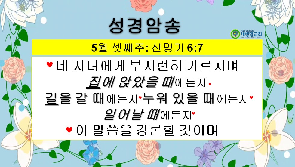 - 다음글 20250511 교회학교 말씀암송 구절 / 신명기 6장 4-5절 +6절 25.05.24