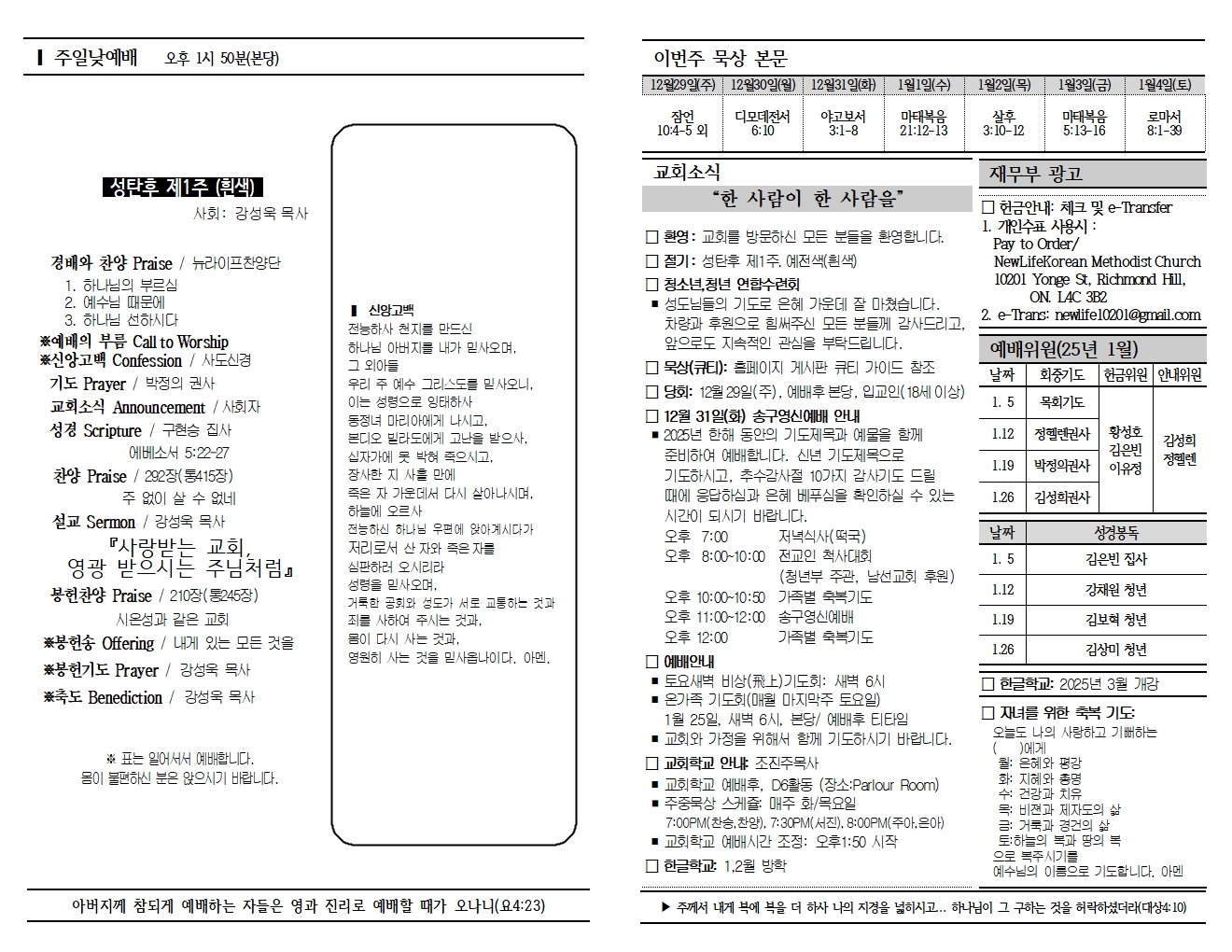 20241229 교회소식 및 주보