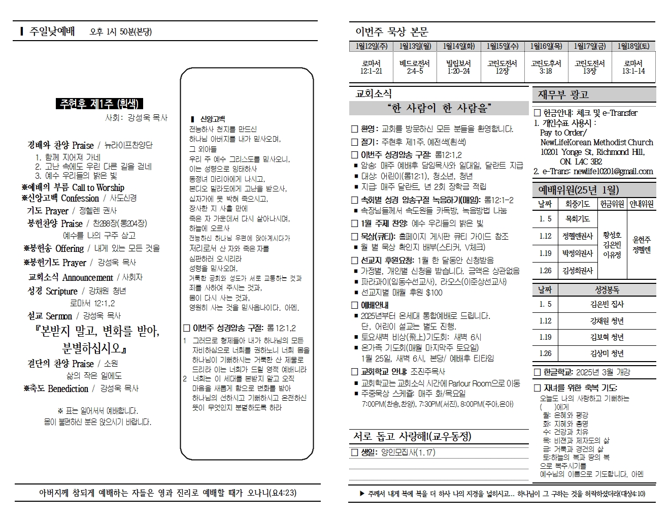 20250112 교회소식 및 주보