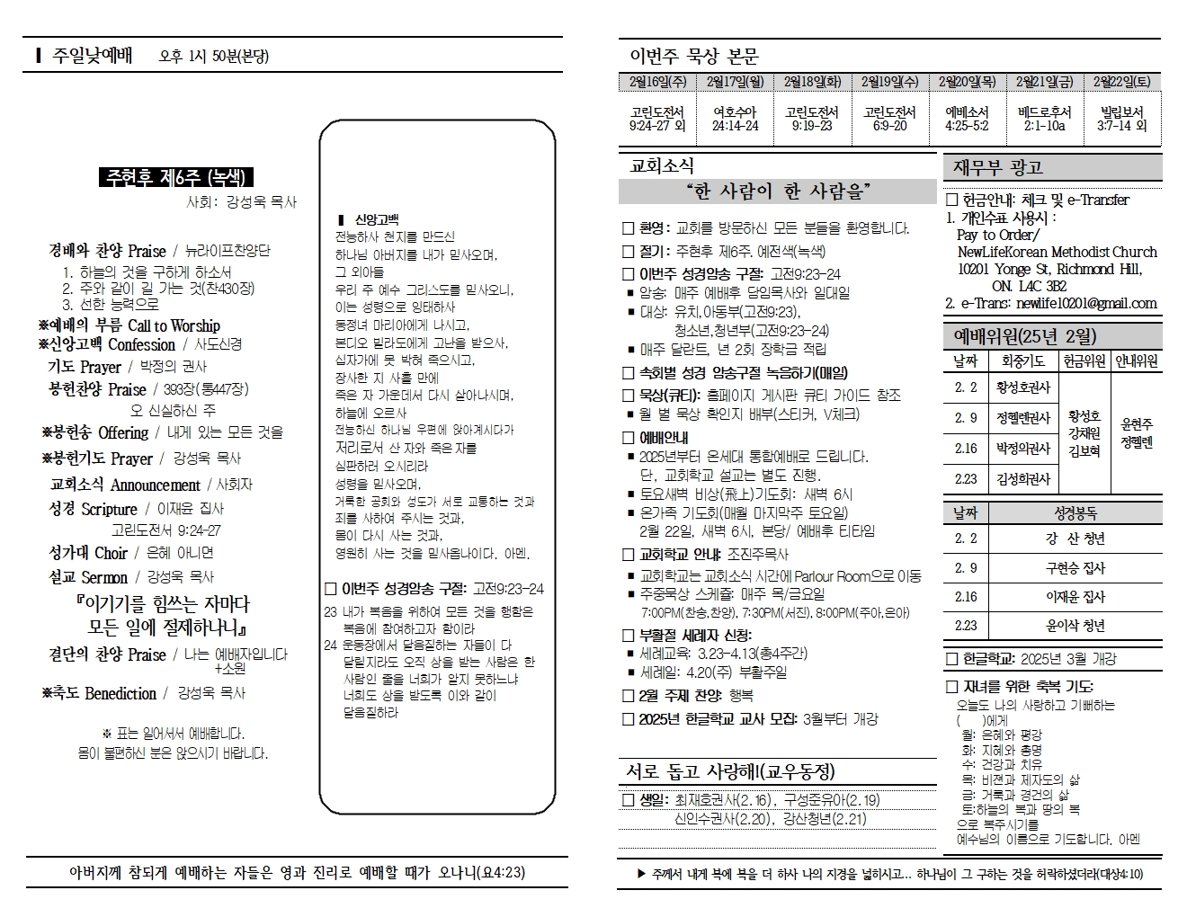20250216 교회소식 및 주보