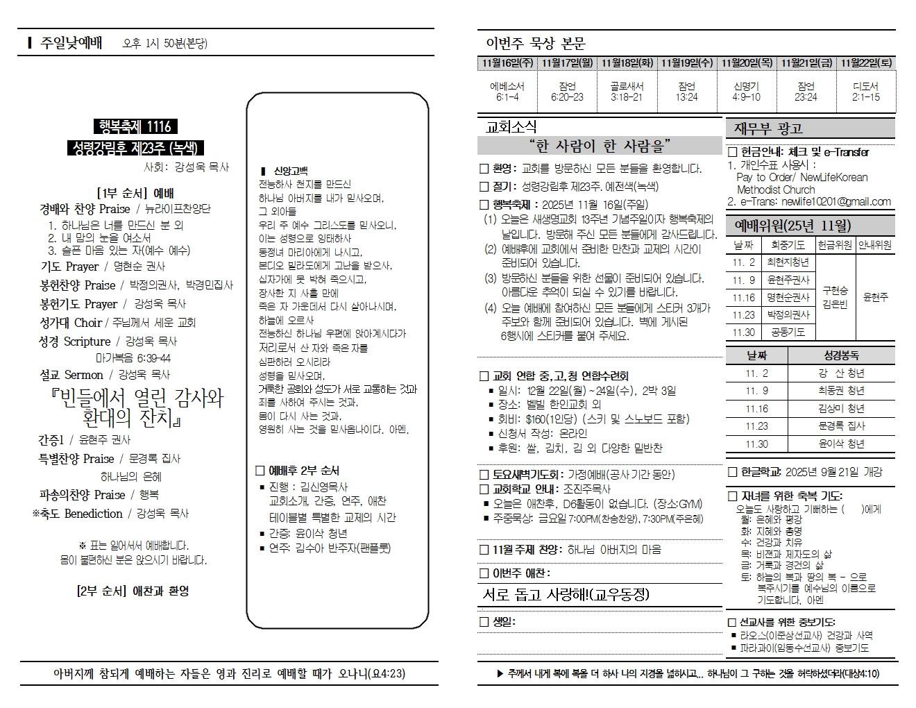 20251116 교회소식 및 주보