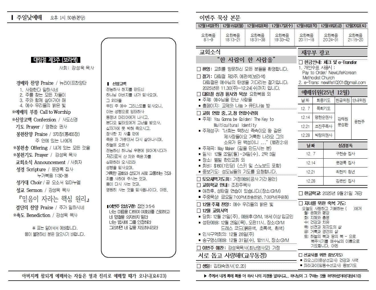 20251214 교회소식 및 주보